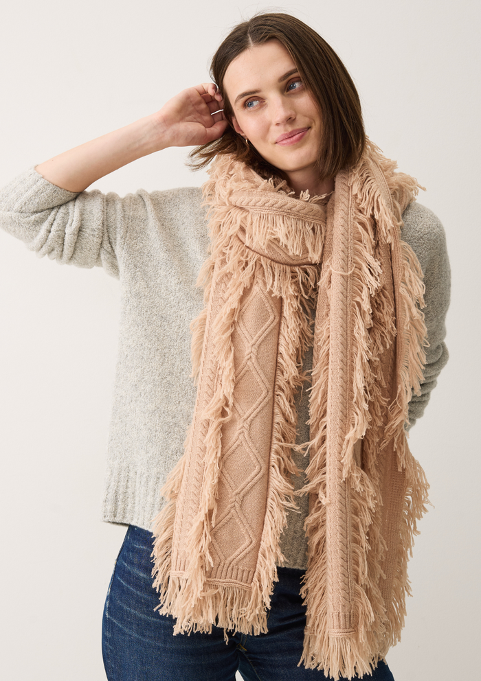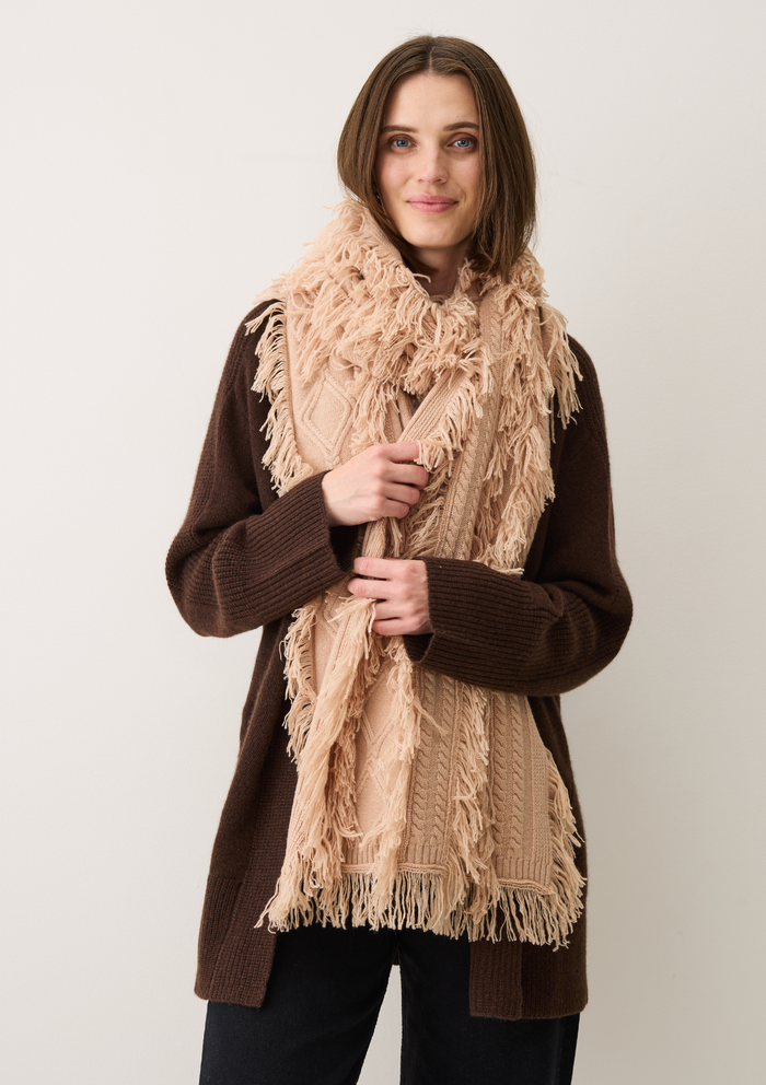 Regular price $491.00Crafted from supremely soft cashmere, this fringe scarf in toffee brown is the ultimate cold-weather essential. Lightweight yet insulating, it provides superior warmth throughout the winter months while remaining effortlessly elegant. Its oversized silhouette and vintage-inspired fringes add both texture and sophistication, making it a versatile accessory that works with everything from tailored coats in black, grey, navy, or brown to classic denim and chic skirts.