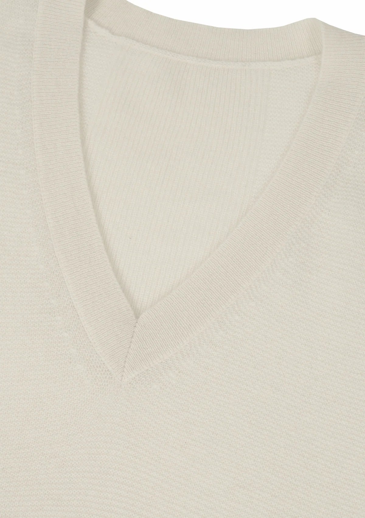 • V neck with wide ribbed trims and pearl stitch body