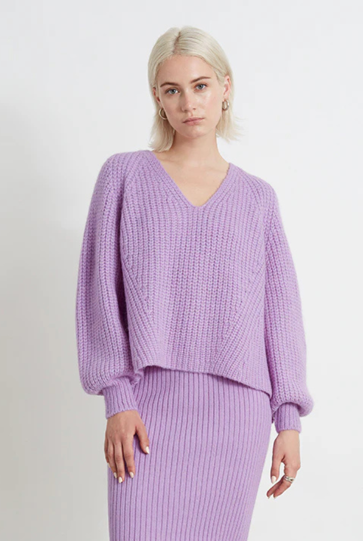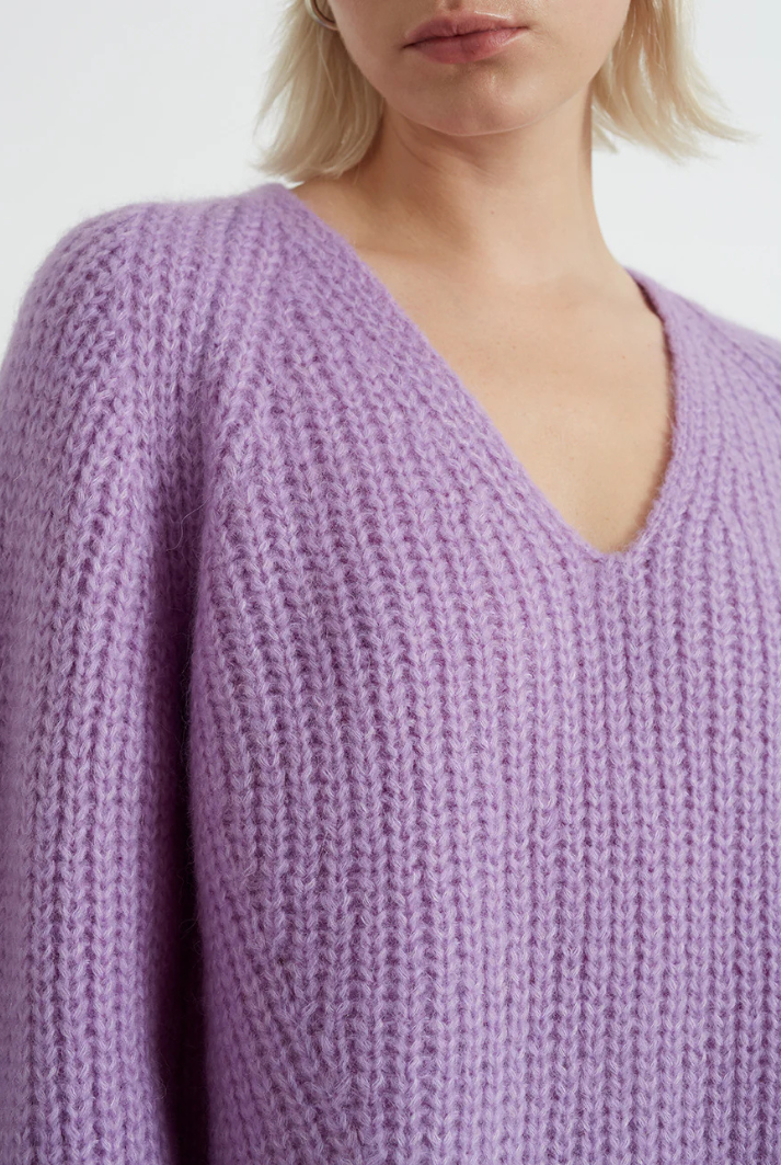 Tess is ELEVEN SIX co-founder: Catherine Carnevale’s favorite pop-on-and-go seasonal staple-sweater. This sweater's super soft, brushed alpaca in fisherman- rib stitch, deep clean-finish V-neck, blouson-sleeve, and relaxed hi-low hem length stack, satisfies the refined feminine, yet relaxed mood in us all.