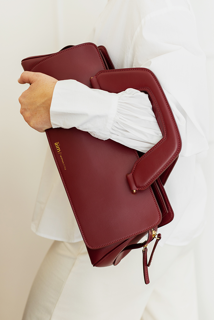 Inspired by the design of a 70’s vintage bag that caught Anna Maria’s eye in a local flea market, āim's iconic bag balances harmony and strength, body and soul, feminine and masculine. The perfect 24/7 companion.