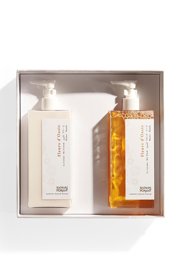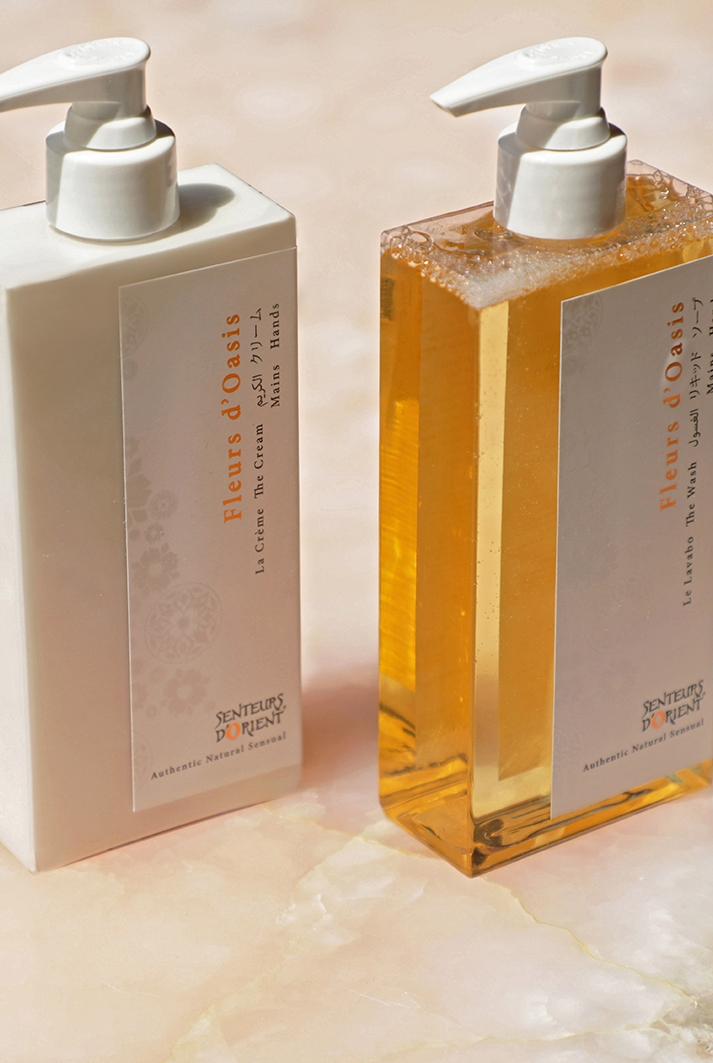 Our best-sellers together in time for the holidays! Fleurs d'Oasis The Wash gently cleanses hands and Fleurs d'Oasis The Cream beautifully nourishes the skin for soft, delicate hands. The Wash and The Cream are natural formulas, paraben and silicon-free, made with vegetal proteins, pure essential oils and rich in hydrating plant oils.