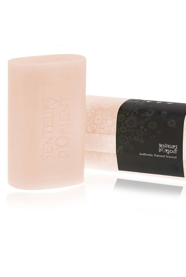Each bar is handcrafted by artisans in Lebanon from a pure vegetal base and air dried for about ten days to achieve its smooth yet rustic texture. The formula blends olive oil, shea butter, glycerin, and vitamin E to leave skin dewy, soft, and beautifully nourished. The fragrance is elevated with cabreuva and cedarwood essential oils, adding warmth and earthy depth to the gardenia notes.