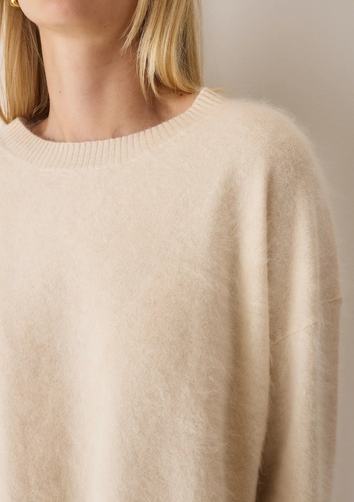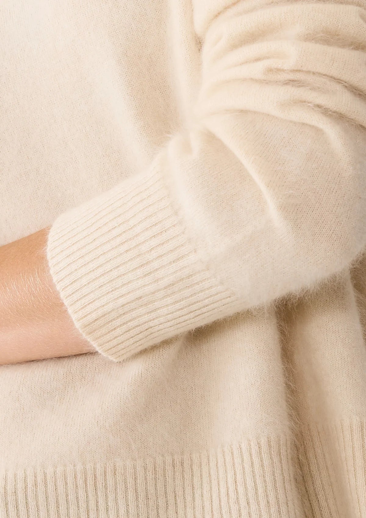 Knitted in brushed cashmere our sweater is the very definition of timeless & glamorous winter chic.  Perfect for winter dressing. Versatile and timeless.