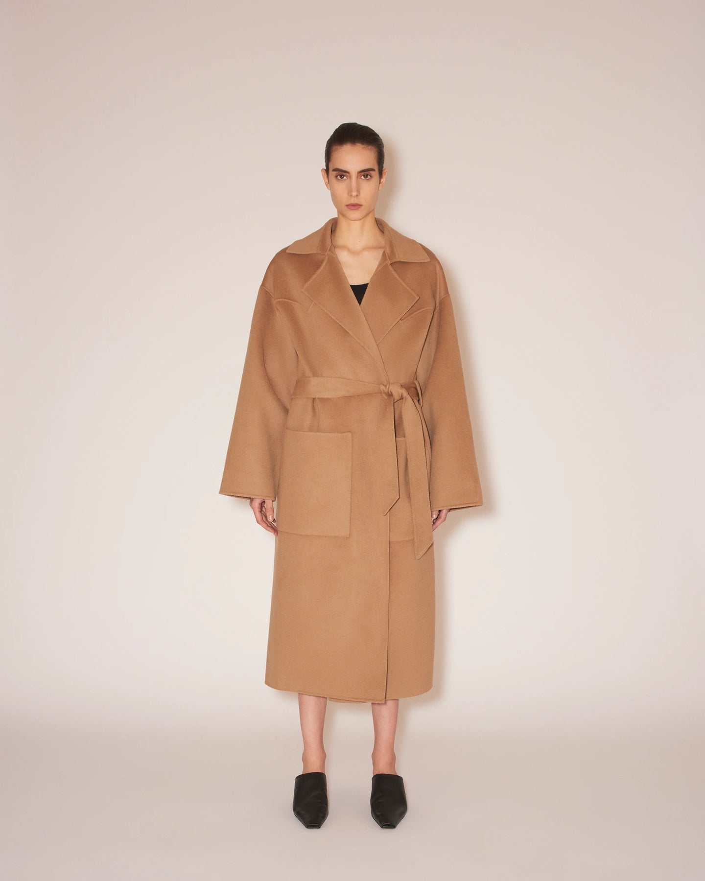 A worthwhile investment, the Alamo coat is spun from a blend of camel wool and silk - it's left unlined to accentuate the luxuriously soft feel. Tie the belt to cinch the waist and keep in the heat.