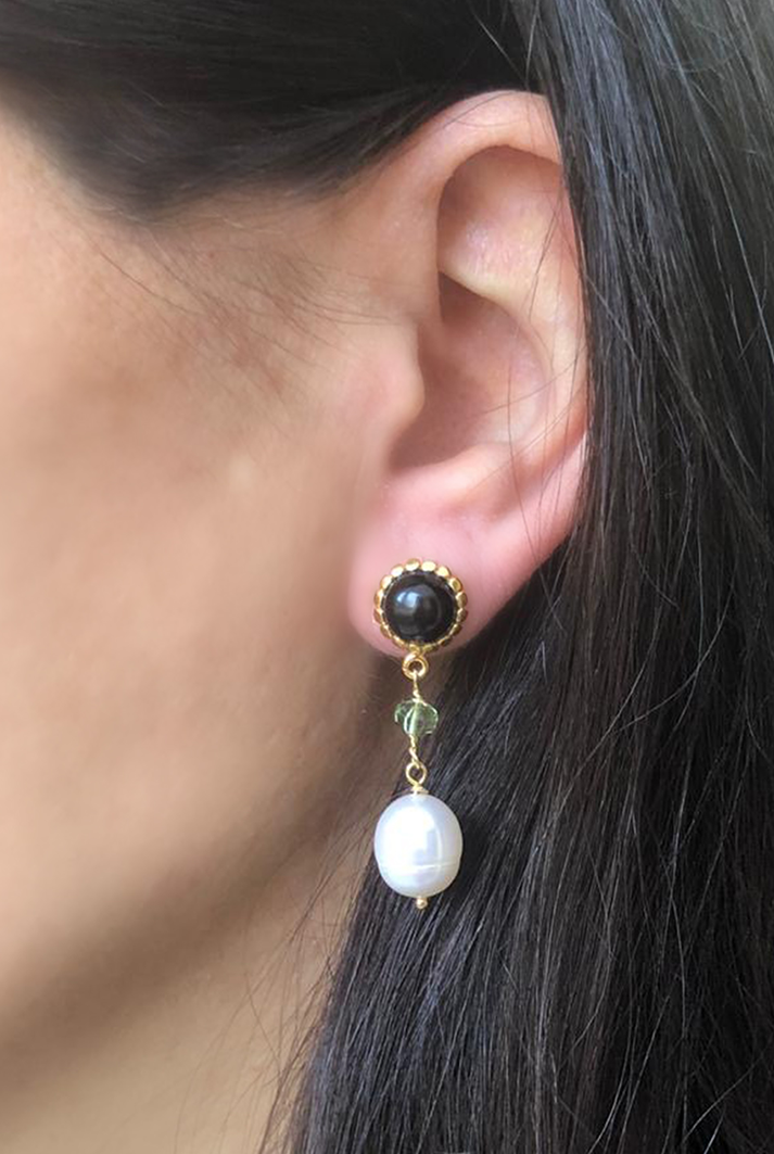 Regular price $96.00These earrings from the Positano collection feature polished onyx stones, natural green amethyst and pearls. They're handmade in a studio in Italy by using traditional manufacturing techniques. They're extremely lightweight, which means you can wear them comfortably all day or night long.