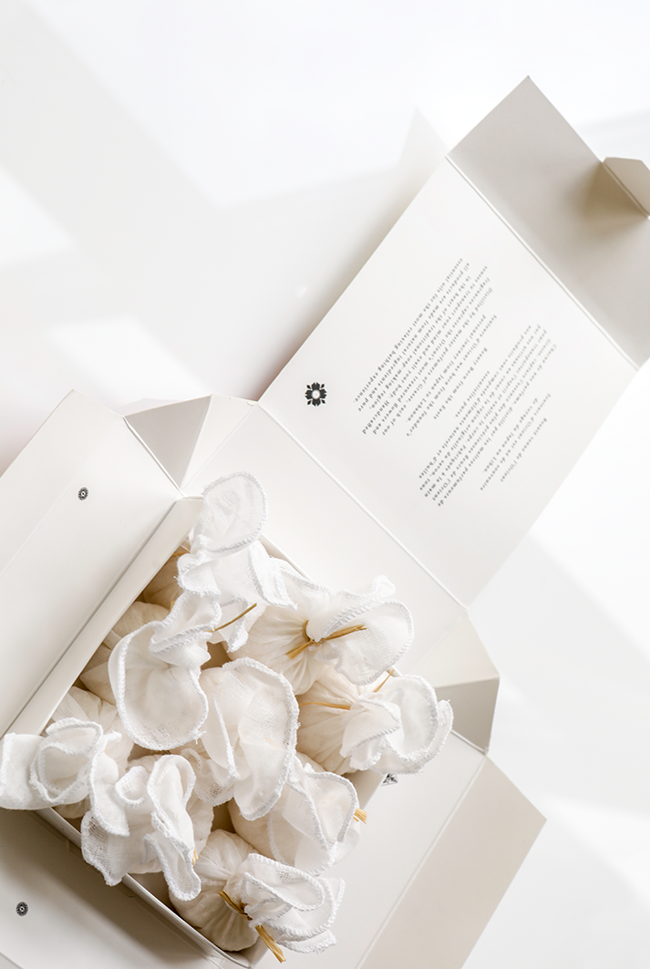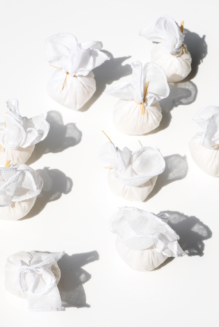 The Jasmine of Arabia bath salts are naturally harvested, hand-roasted, delicately infused with essential oils and hand-wrapped in 9 precious natural gauze pouches. The Jasmine of Arabia imparts the most exquisite fragrance with its floral and sweet notes known to deeply calm the nervous system and enhance mood for a positive, energetic, and romantic bath.