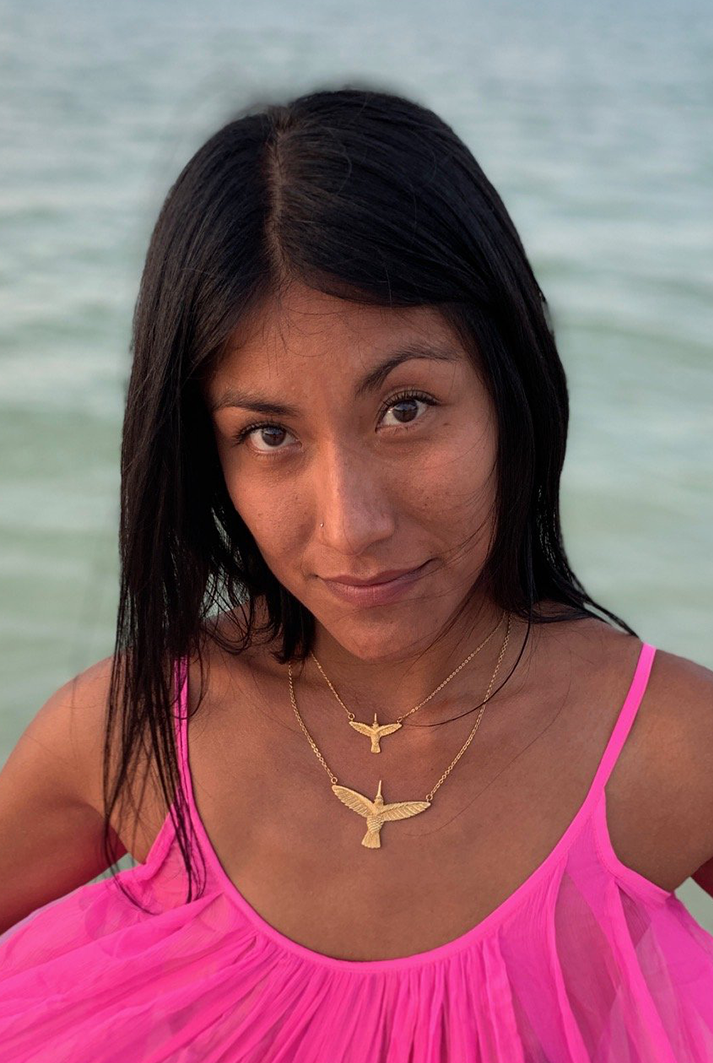 The hummingbird symbolizes the enjoyment of life and lightness of being. It has been considered a sacred bird since ancient Mexico. It represented the god Huitzilopochtli who wore it on his headpiece, always accompanied by a flower.