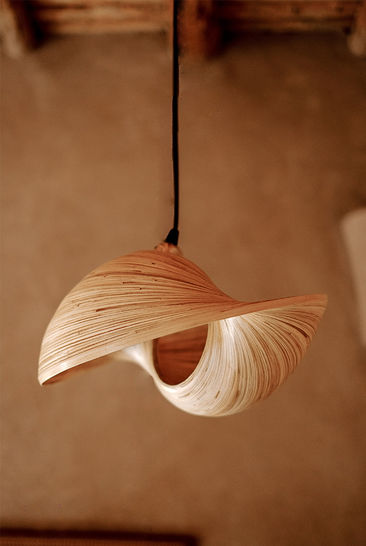 Udara Bamboo Lampshade handcrafted pendant light with sculptural shell shape sustainable bamboo lighting from Bambusa collection