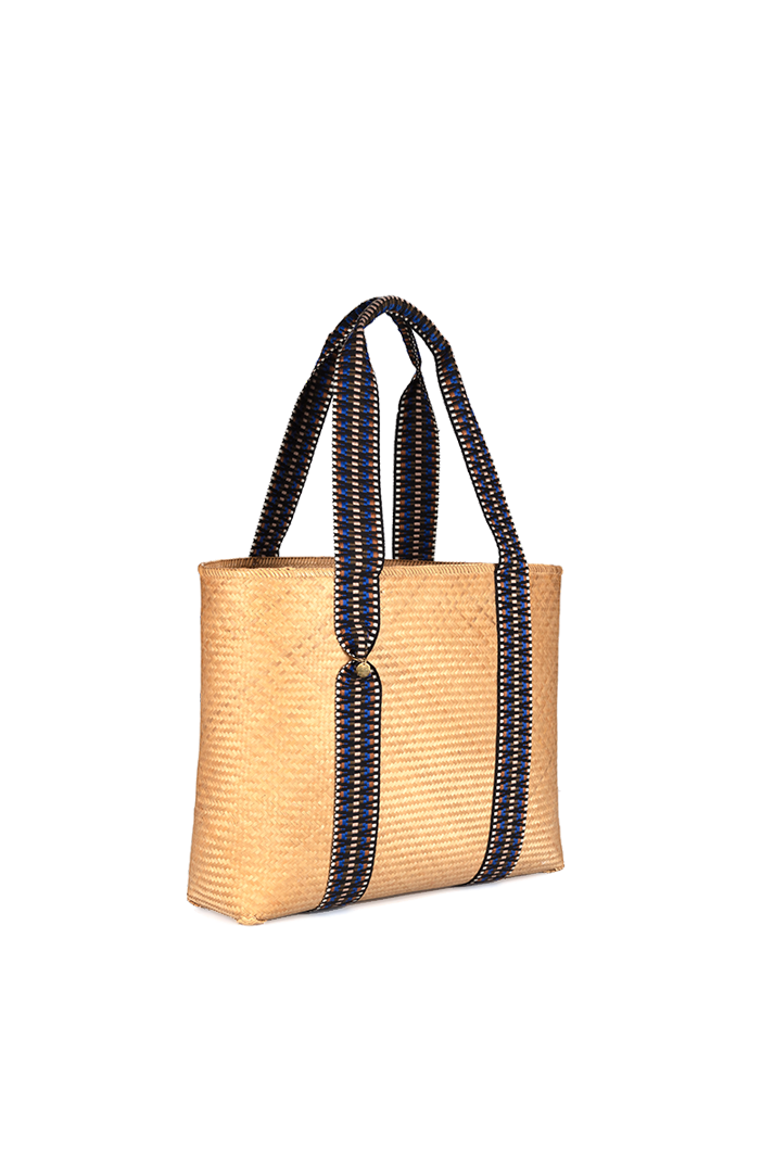 Regular price $410.00This vegan bamboo tote bag is a contemporary take on a summer favourite. Robust and lightweight in equal measure, it is handcrafted using traditional Lombokian weaving skills, offset with contemporary jacquard straps. Sling the bag over your shoulder for trips to the market and beach alike.