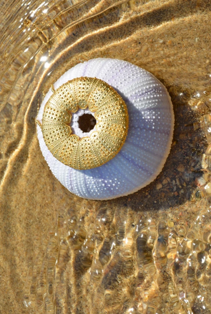 This 22K Gold plated necklace is inspired by the mysteries and beauty of our oceans. This collection is a combination of different elements and textures of the ocean such as the coral, the sea urchin and the beautiful symbol created in the sand by a very special fish, the `Love Mandala´