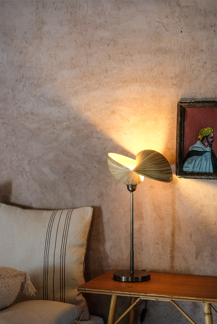 The lampshade is made from bamboo and fitted on a stand made from high-quality bronze and V-Legal certified wood - meaning it is not illegally logged from vulnerable areas.