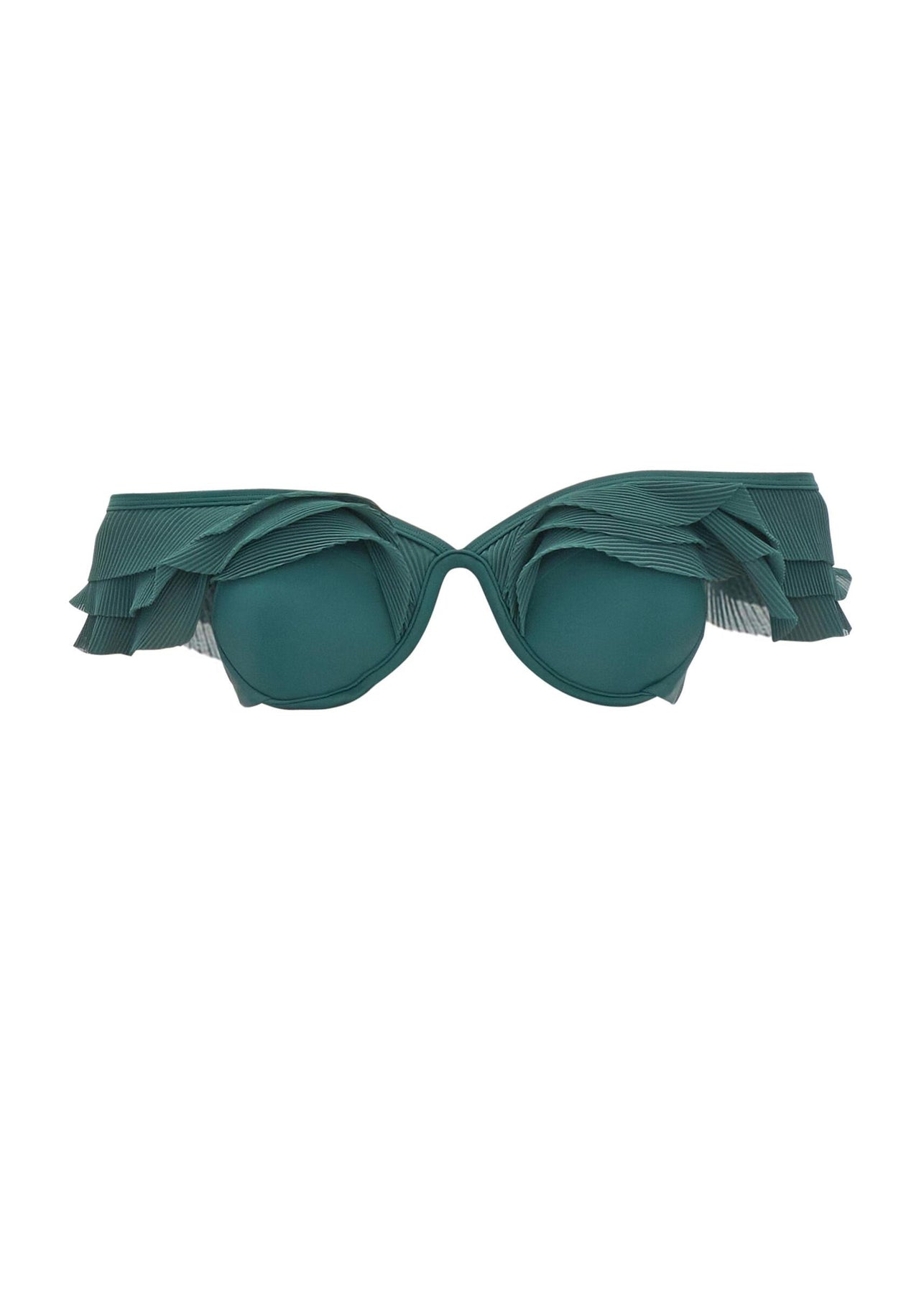 The SALAMA high-rise bikini's beauty lies in its intricacy. It features a 3-tier pleated sheer ruffle that is both textural, soft, and feminine. The SALAMA is one our of signature bikini styles featuring a W underwire and adjustable shoulder strap that can be worn in different ways to give multiple looks in one.