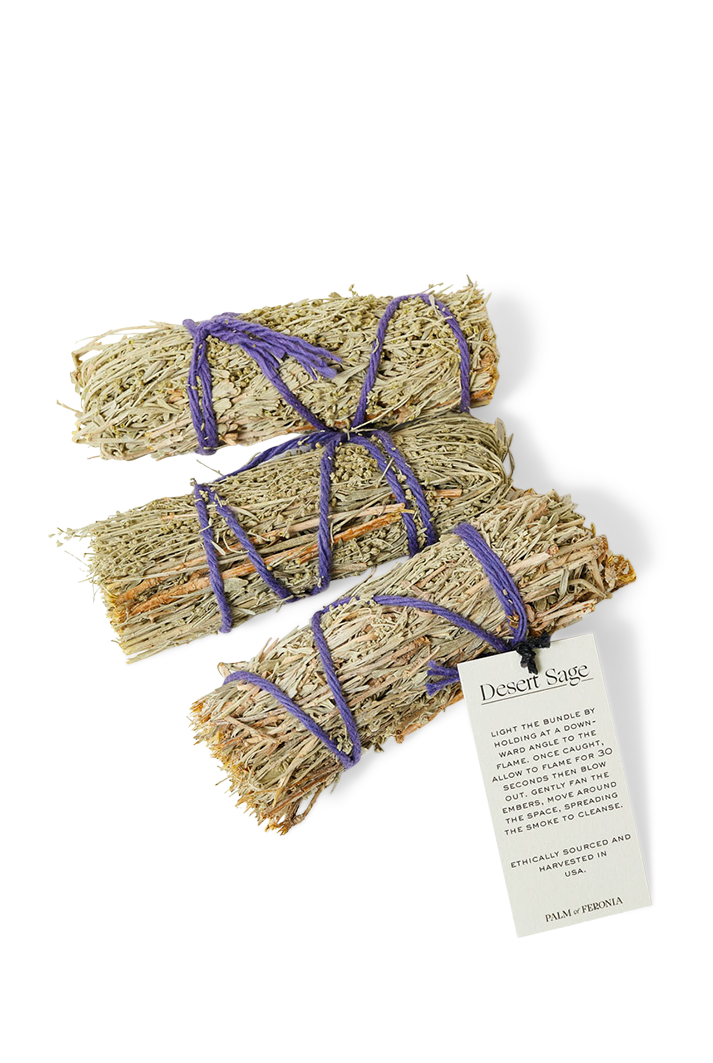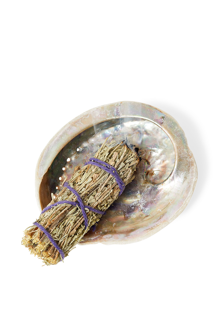 Light the bundle by holding at a downward angle to the flame. Once caught, allow to flame for 30 seconds then blow out. Gently fan the embers, move around the space, spreading the smoke to cleanse