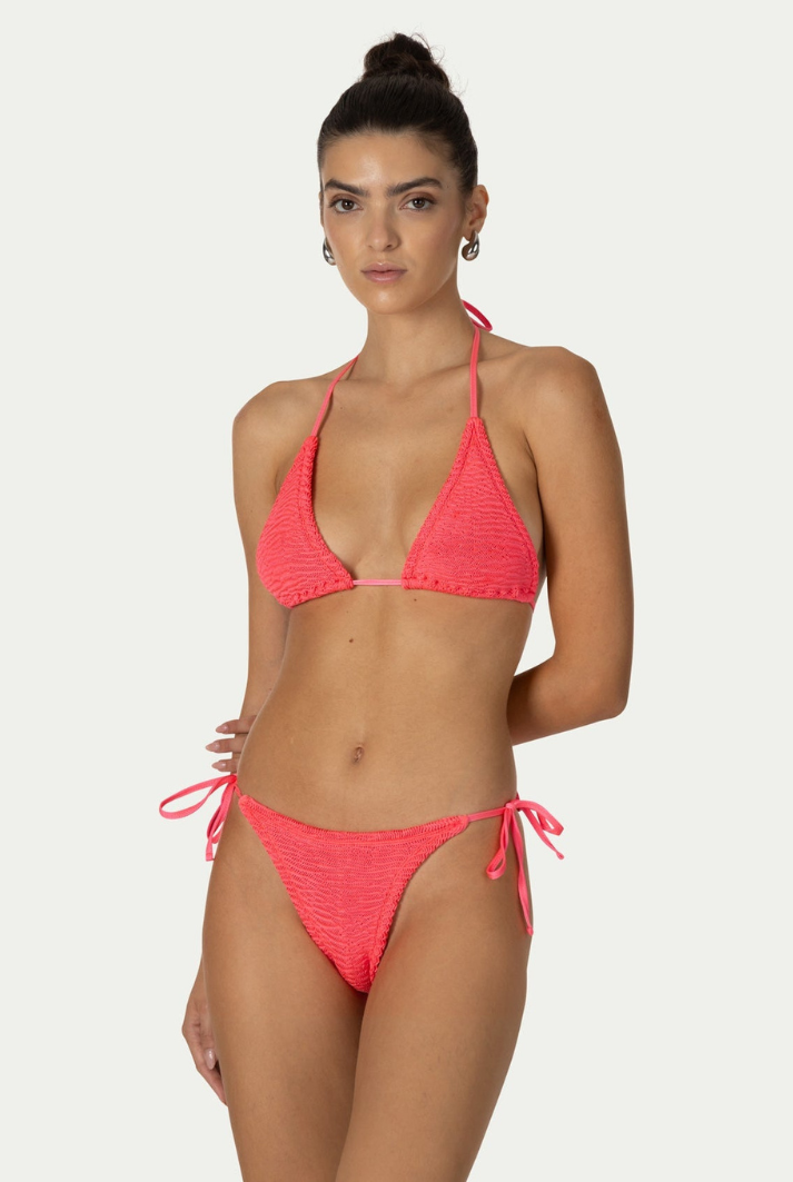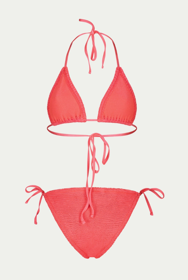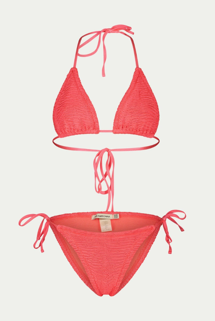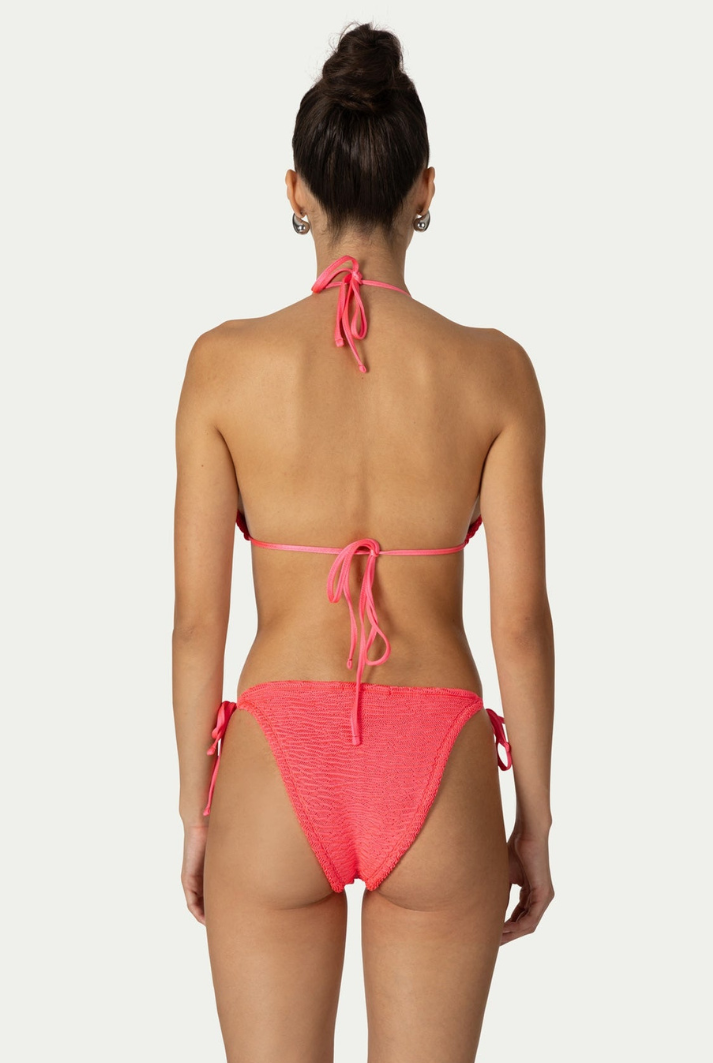 Timeless and refined, the EMA swimsuit set embodies understated elegance with a universally flattering silhouette. The top features classic triangular cups, designed to sculpt and support, while delicate ties at the neck and back allow for a personalised fit. The bottoms mirror this adjustability with elegant side ties, ensuring comfort and versatility. Crafted from luxuriously soft, high-quality fabric with exceptional elasticity, EMA adapts seamlessly to a range of body shapes—from XS to 2XL, offering both style and ease. An essential piece for the modern woman seeking both sophistication and comfort in her beachwear wardrobe.