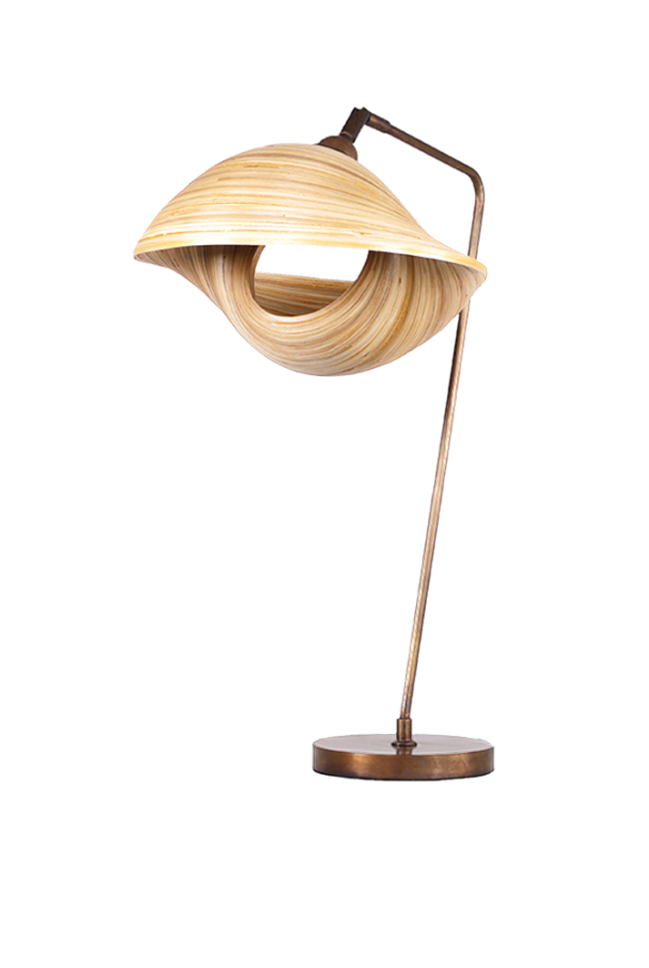 Regular price $430.00The Kirana Bamboo Shell Arc Lamp from the Bambusa Collection combines sculptural design with artisanal craftsmanship. Named after the Indonesian word Kirana, meaning “ray of light” or “all that is beautiful,” this lamp is a refined statement for desks, nightstands or accent tables. Each shade is handmade from layers of thinly sliced bamboo, shaped into the collection’s signature Shell silhouette, and mounted on a bronze pedestal with V-Legal certified wood. Designed to celebrate natural textures, the arc-shaped structure adds a graceful modernity while providing warm, ambient illumination. As bamboo is a natural material, each lamp carries unique variations in tone and texture, making every piece one-of-a-kind. A thoughtful balance of sustainable design and timeless elegance, the Kirana Arc Lamp is perfect for those seeking handcrafted bamboo lighting with contemporary appeal.