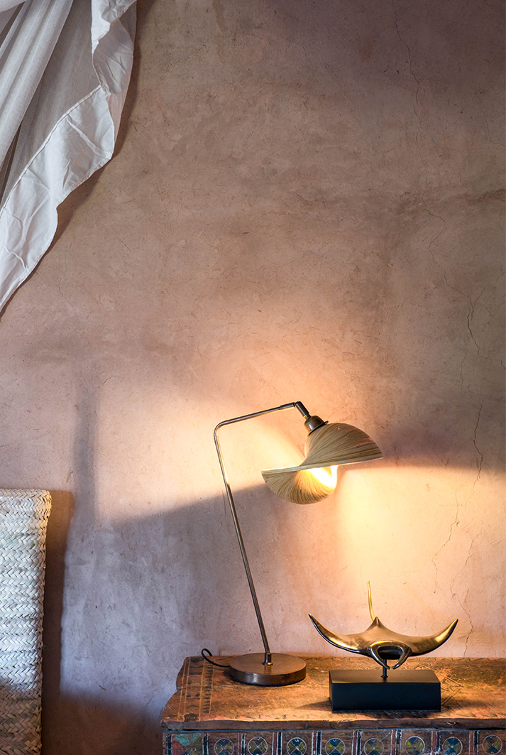 The lampshade is made from bamboo and fitted on a stand made from high-quality bronze and V-Legal certified wood - meaning it is not illegally logged from vulnerable areas.